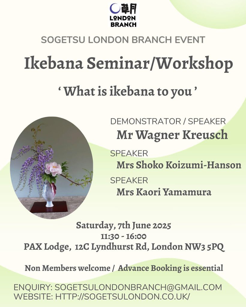 Sogetsu London Branch is a non-profit, membership organisation, serving as a community for Sogetsu Ikebana students and teachers, providing information and opportunities to learn Sogetsu Ikebana in the London area.